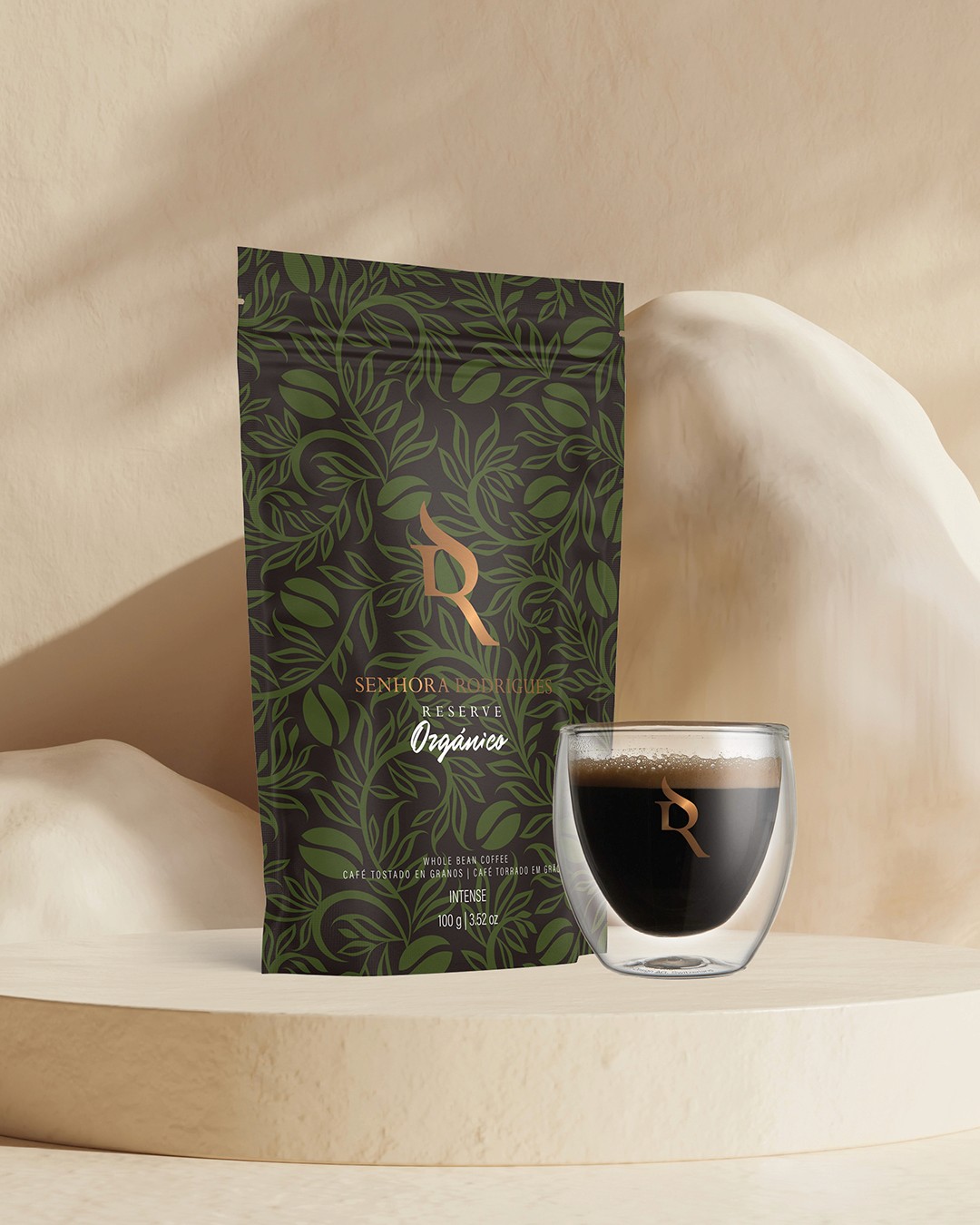 Senhora Rodrigues Reserve nació entre montañas y cafetos en Alta Mogiana, al norte de São Paulo, donde el café se cuida como una herencia. Productores familiares con visión global, necesitaban una identidad que oliera a tierra húmeda y a sofisticación. Trabajamos desde su raíz, construyendo una narrativa que honrara el origen y hablara con la elegancia de una marca que sabe lo que vale. El logotipo, sobrio y preciso, refleja la calma del proceso artesanal y el orgullo de una reserva hecha a mano. La nueva identidad dio forma a un café con voz propia: auténtico, refinado y preparado para cruzar fronteras sin perder su acento brasileño.