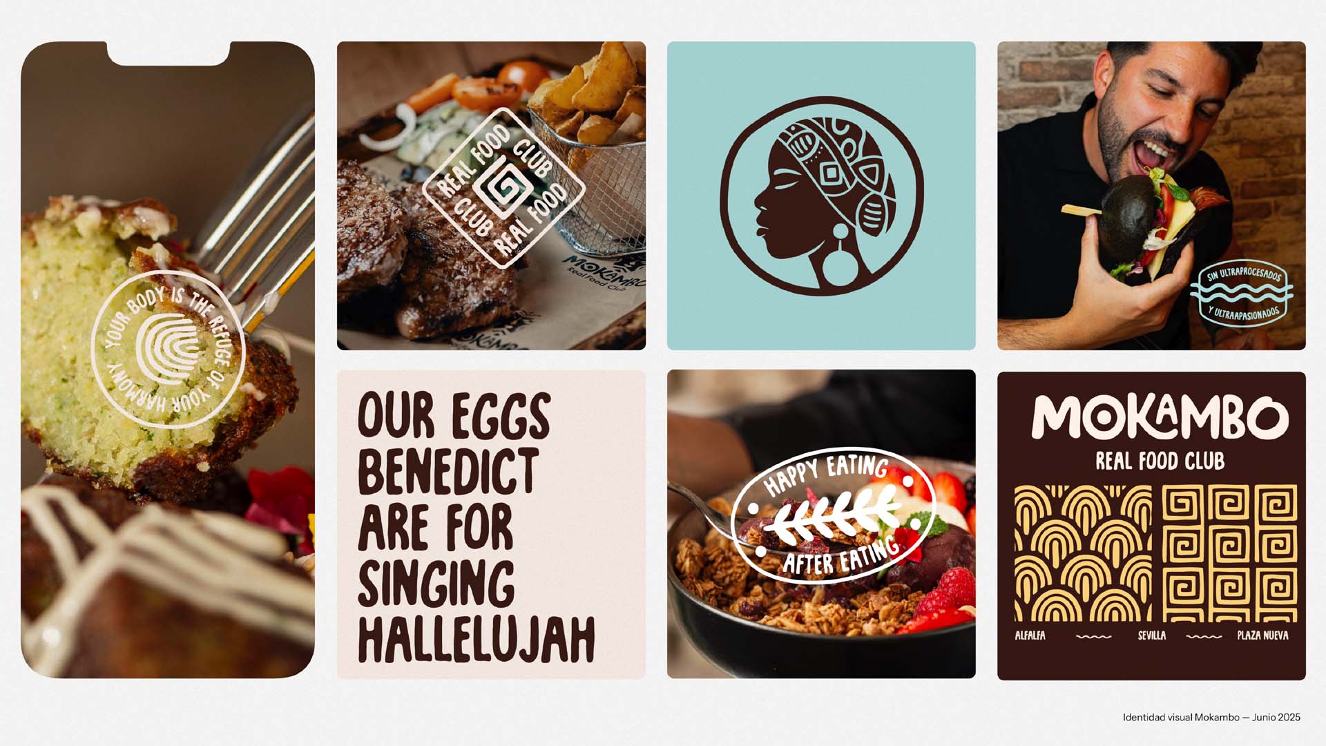 Mokambo es una marca gastronómica ubicada en Sevilla que, tras varios años de crecimiento, necesitaba ordenar y consolidar su identidad visual. El proyecto partía de un sistema gráfico existente, pero fragmentado y sin una estructura clara que facilitara su aplicación consistente. Desde EMECK trabajamos en un proceso de rebranding de consolidación, definiendo un sistema tipográfico coherente, una paleta cromática clara, un lenguaje gráfico propio y, por primera vez, un símbolo de marca que le diera reconocimiento y versatilidad. El resultado es una identidad más sólida, flexible y aplicable en todos los puntos de contacto, que refuerza la personalidad de Mokambo y acompaña su crecimiento con mayor claridad y coherencia visual.